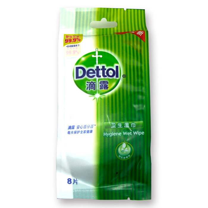 Dipped sanitary wipes are packed with 8 pieces for easy carrying and independent pieces