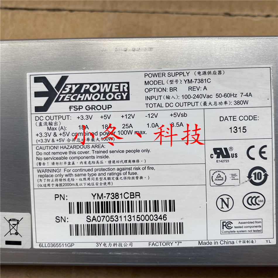 Original 3Y YM-7381C hot-swap server power supply 380W redundant power module spot