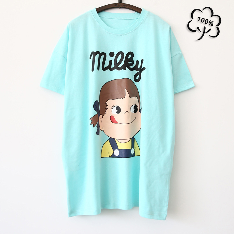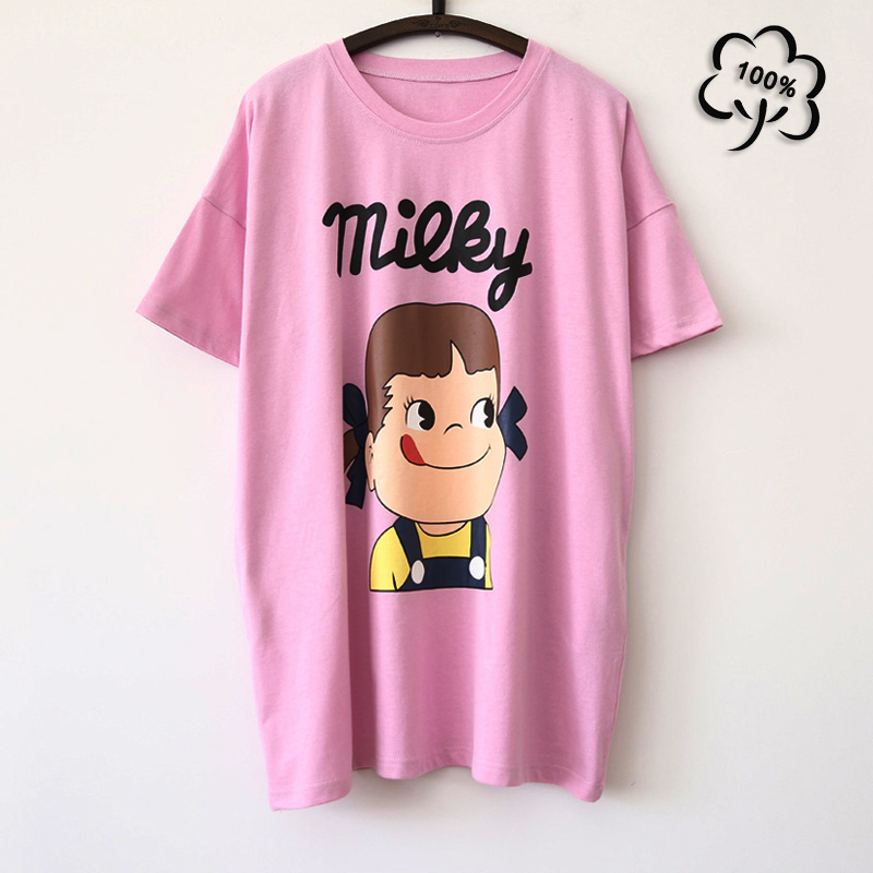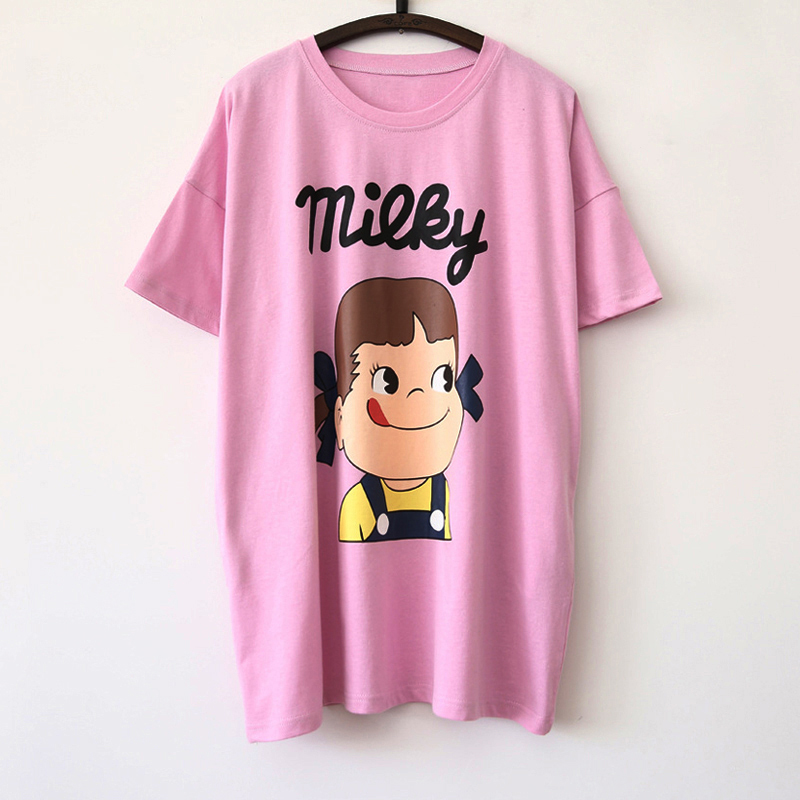 Pregnant women summer coat cartoon 2020 Han loose large - yard fat MM summer short sleeve pregnant woman mid - long woman