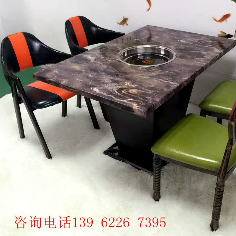 Marble Hotpot Table INDUCTION COOKERY INTEGRATED HOTEL COMMERCIAL CATERING SHOP TABLE BARBECUE FIRE BOILER SHOP TABLE AND CHAIRS COMBINATION