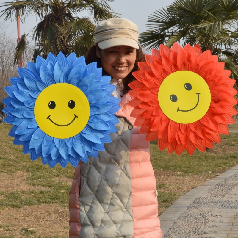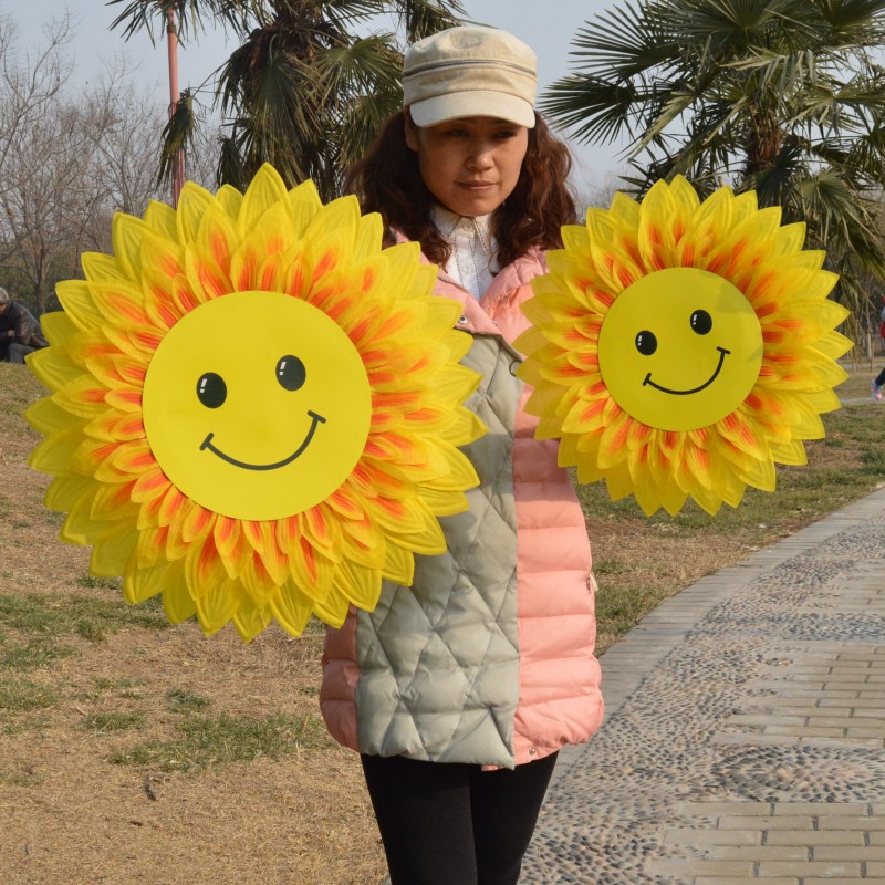Smiling face sunflower hand holding flower kindergarten dance props sunflower sports meeting entrance ceremony children dancing hand flower
