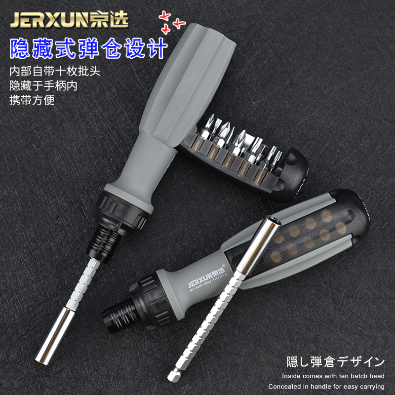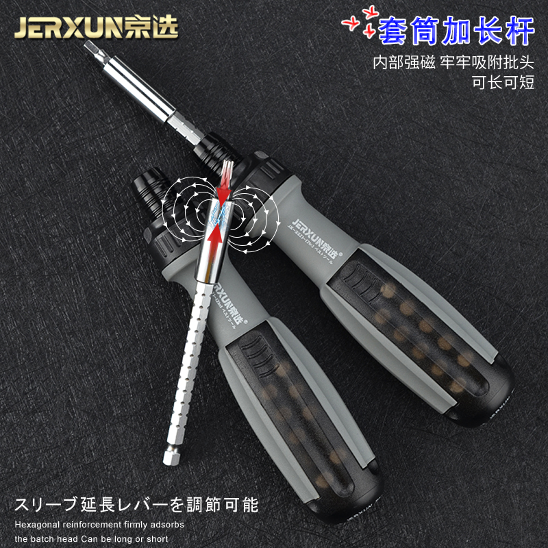 Jingxuan ratchet screwdriver set multifunctional 12-in-1 telescopic change cone cross word plum blossom hexagonal screwdriver