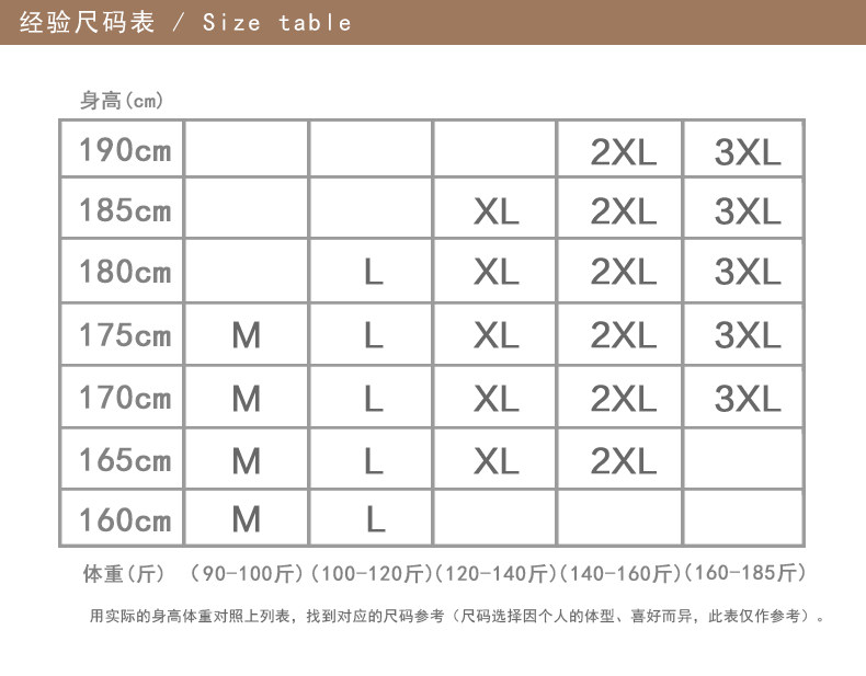 165(M) 170(L) 175(XL) 180(XXL) 185(XXXL)