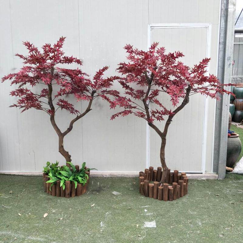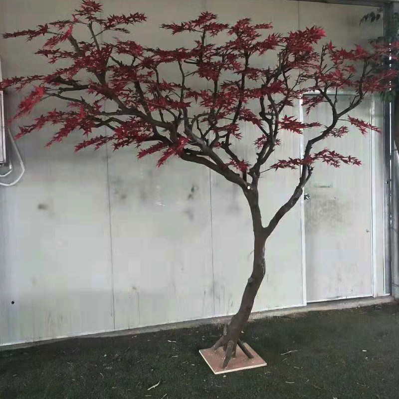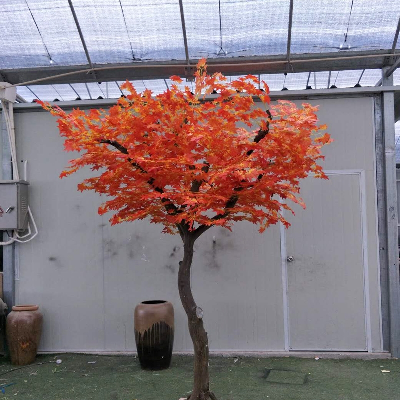 Simulation Red Maple Leaf Tree Emulation Plant Ground Potted Plant False Tree Large Green Plant Bonsai Plastic Fake Flower Decoration Living Room-Taobao