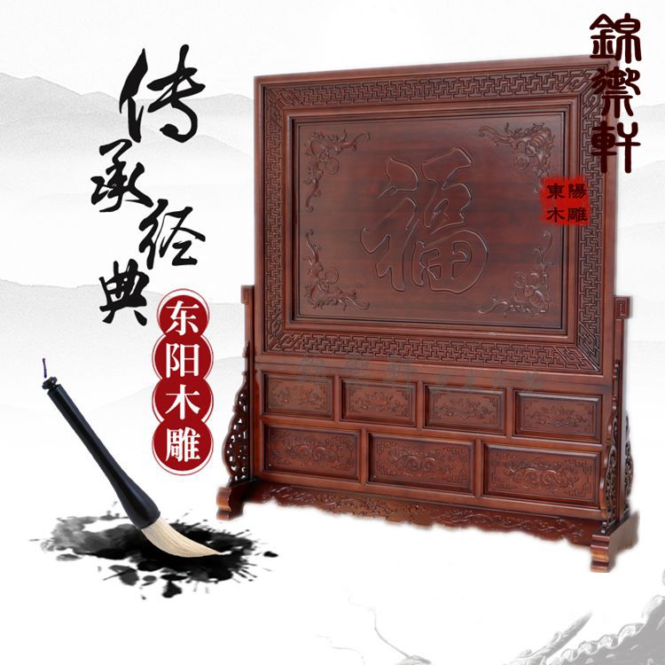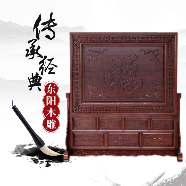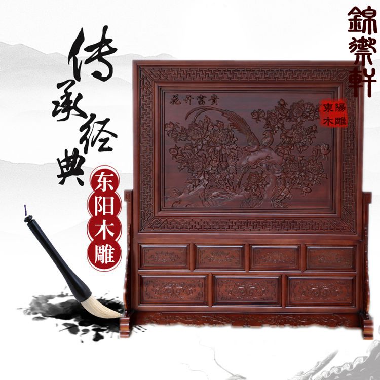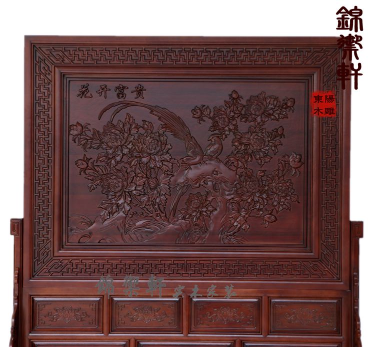 Solid wood flowers bloom rich screen Dongyang wood carving floor interstitial seat screen Chinese-style entrance partition sitting screen