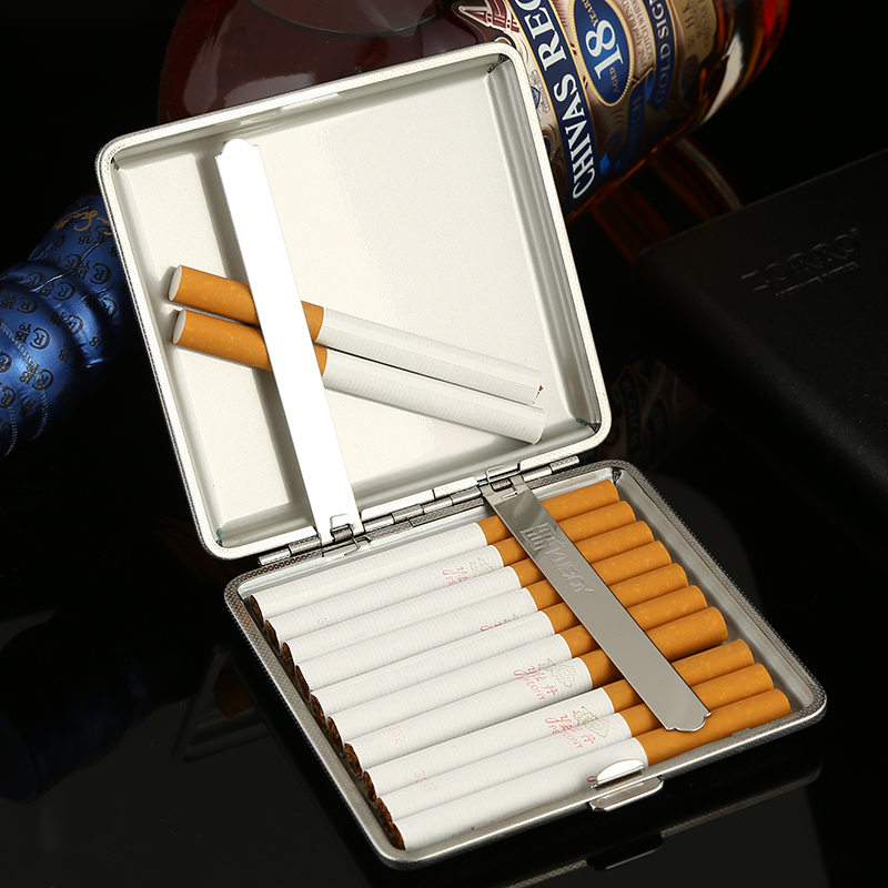 Cool Treasure Smoking Box Men Ultrathin Pop-up Automatic Leather Cigarette Case Individuality Transparent Smoke Shell Creative Cigarette 20 Loaded Cigarettes box