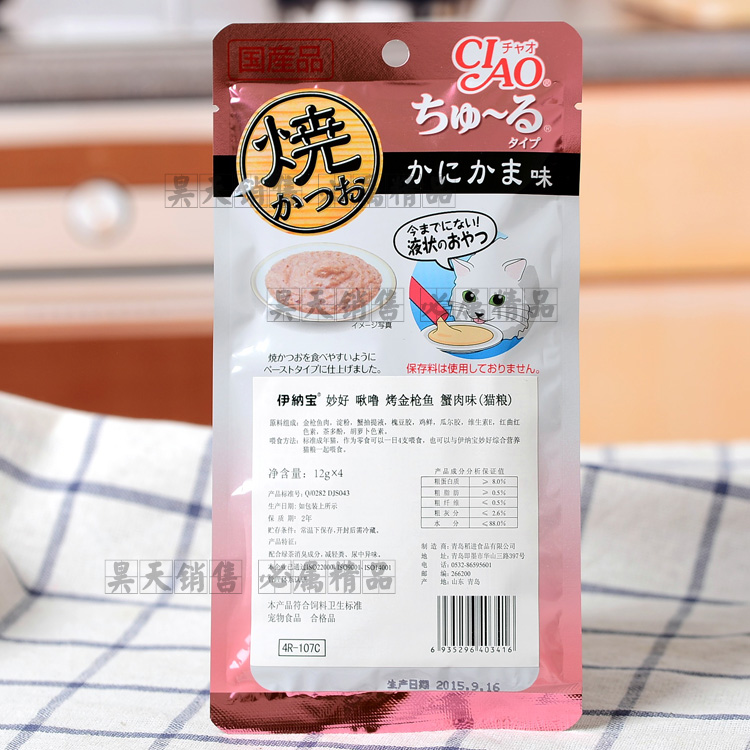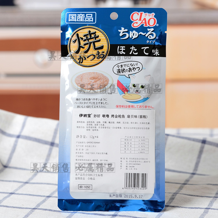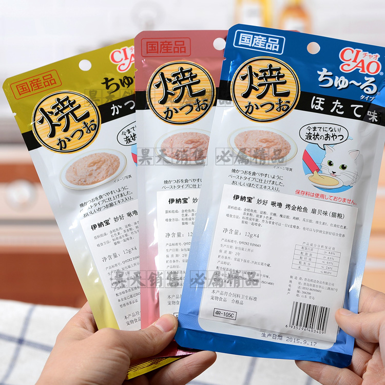 Inabao Miaohao Chiru Grilled tuna liquid cat snack Crab meat Bonito Scallop flavor 12g*4 pieces per pack