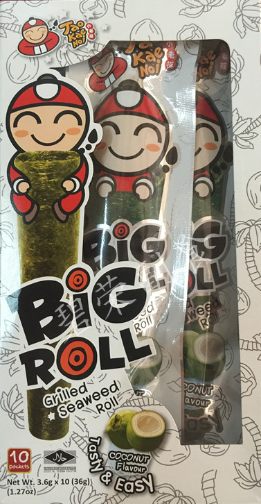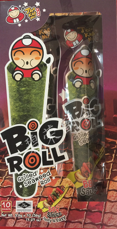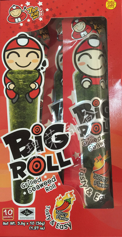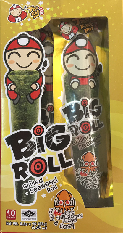 4 boxes of Thailand imported small boss seaweed roll BIGROLL roasted crispy seaweed original spicy variety 3g*9
