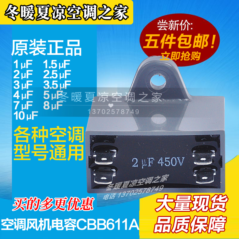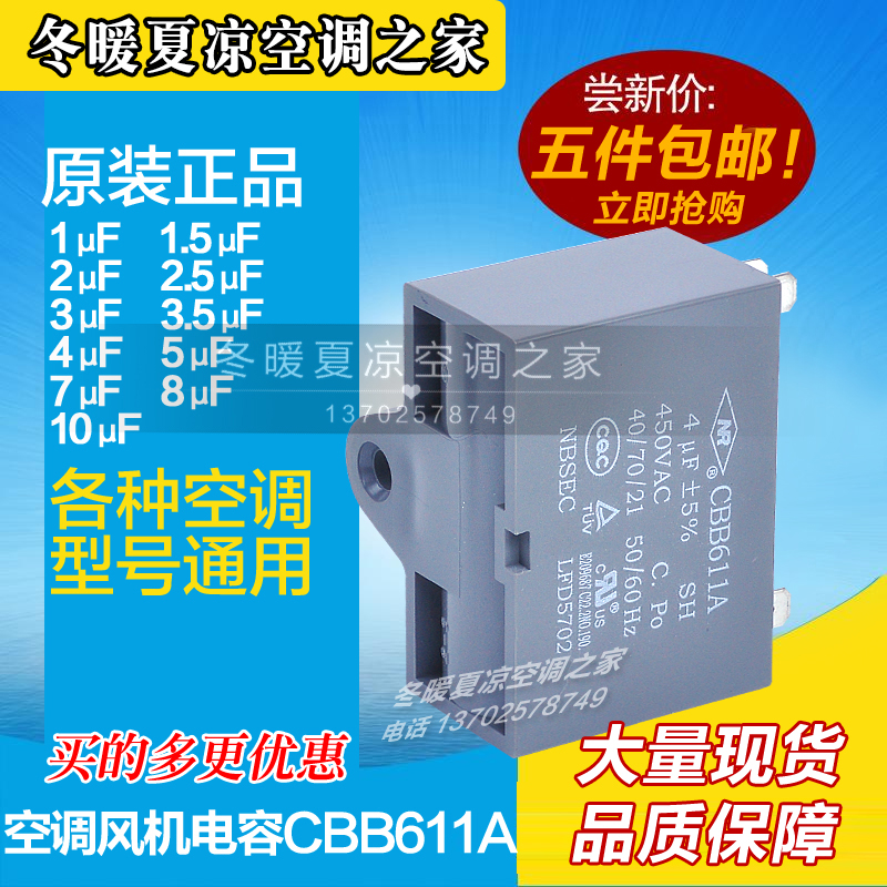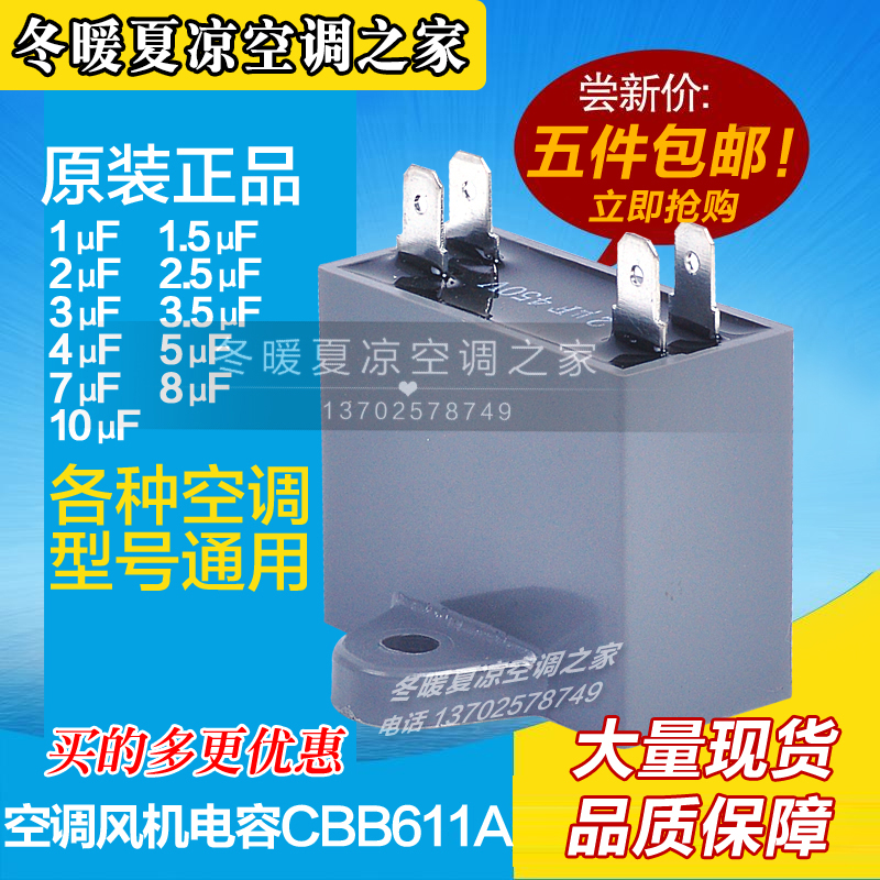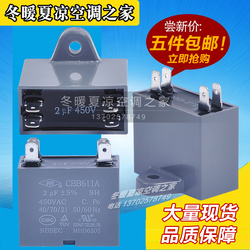 Suitable for Gree air conditioning accessories Fan start plug capacitor CBB611A four plug double plug capacitor
