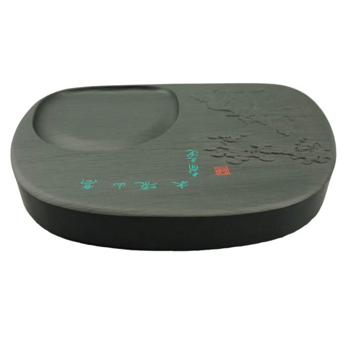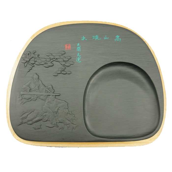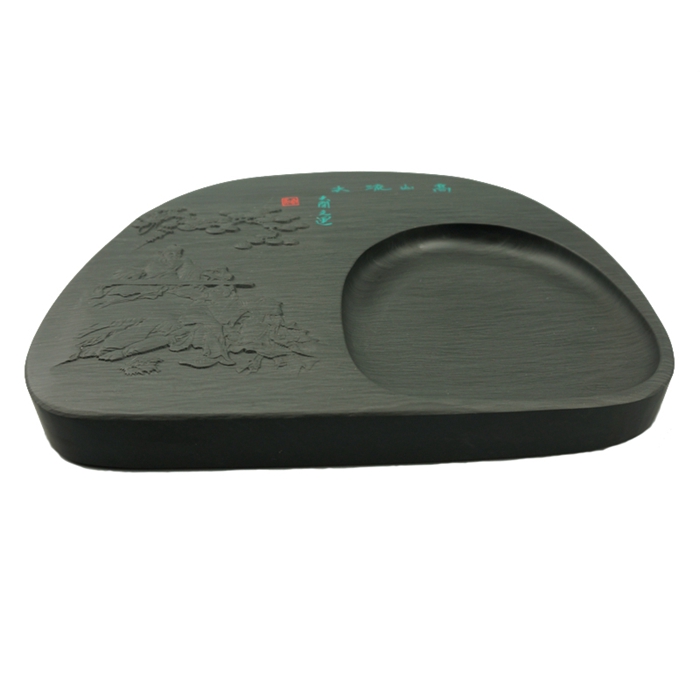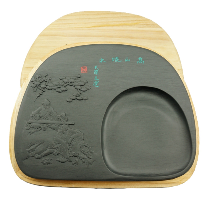 Pen ink paper inkstone authentic Shexian inkstone Old pit inkstone Calligraphy and painting inkstone Water wave pattern boutique inkstone 10 inches high mountain stream water wooden box