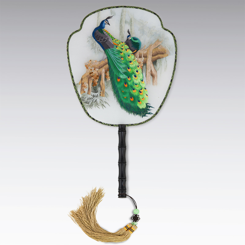 Su embroidery finished double-sided embroidery court wooden fan Dance decoration craft fan Decorative hanging fan Su Embroidery palace fan