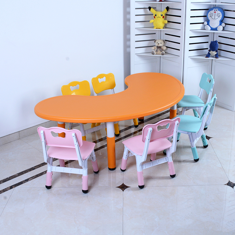 Kindergarten table and chairs Children's home plastic table Learn to write drawing table Semicircular Small Table Lift Moon Table