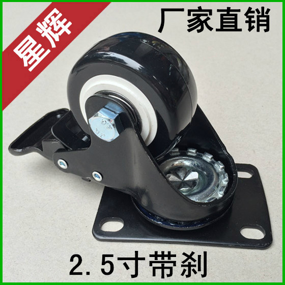 2 5 inch black universal brake caster wheel with double bearing polyurethane universal wheel wheel wheel gold drilling wheel shelving wheel