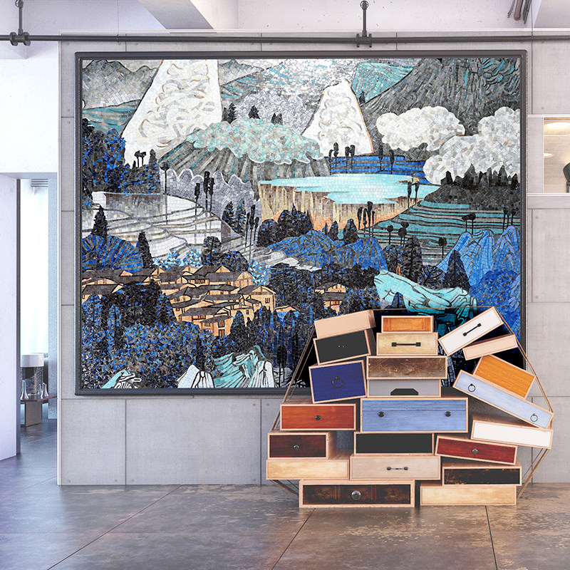 Cat Eye Glass Mosaic Tile Fine Cut Art Puzzle Living Room TV Background Wall Entryway Flower Mural