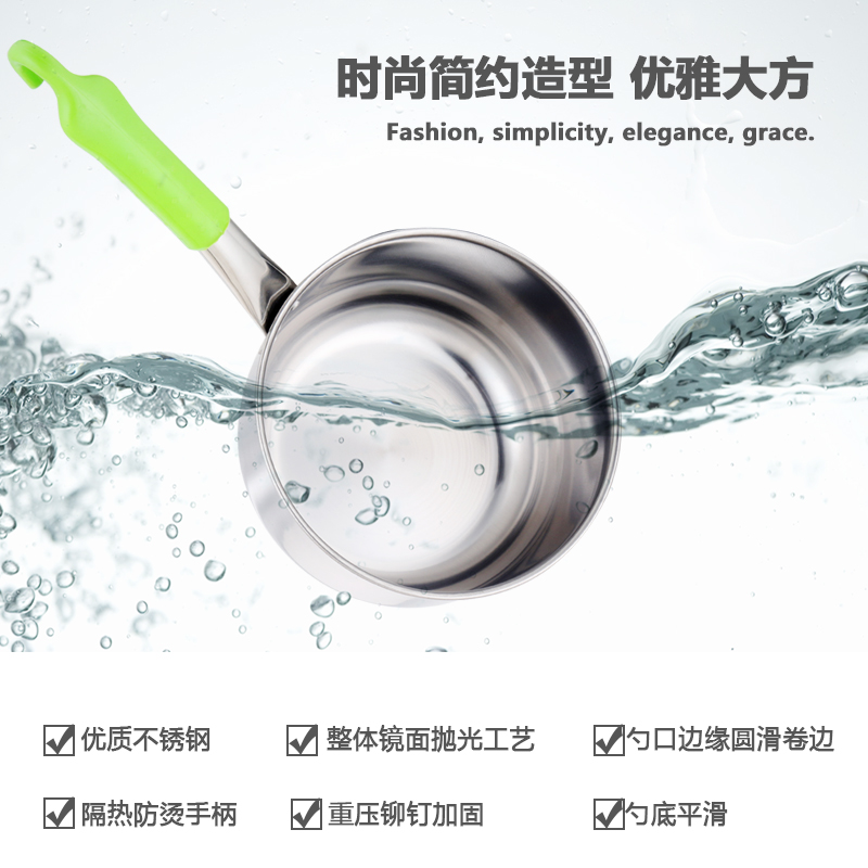 Stainless steel water scoop Water scoop thickened long handle plastic handle Water scoop Kitchen supplies large soup spoon 14 16 18CM