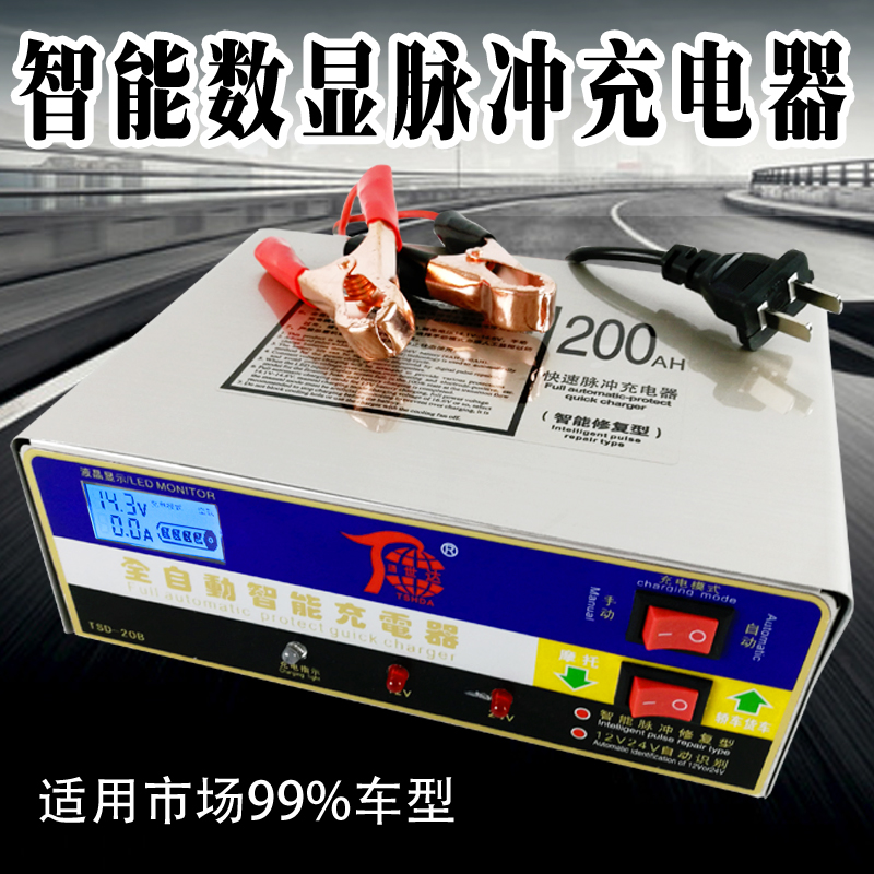 Pure copper car battery charger 12V24V volt Mormon car storage battery intelligent pulse adjustable charging motor