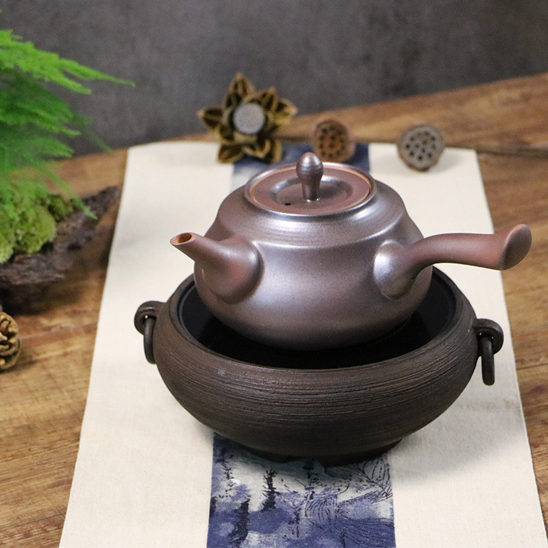Japanese cooking teapot thick pottery hand-held pot ceramic kung fu sand cooking tea maker health black crystal stove boiling water pottery pot