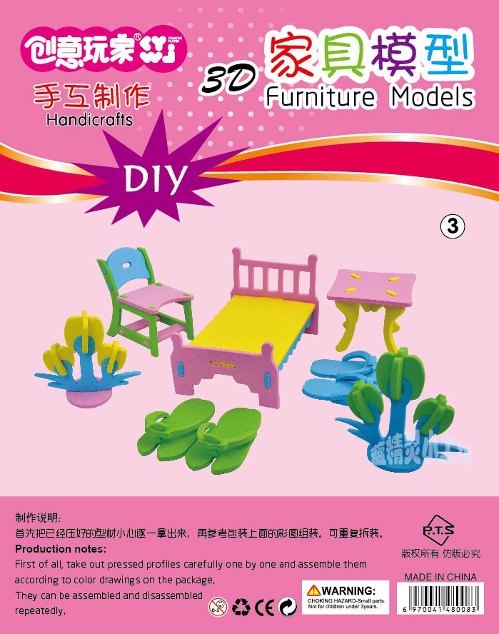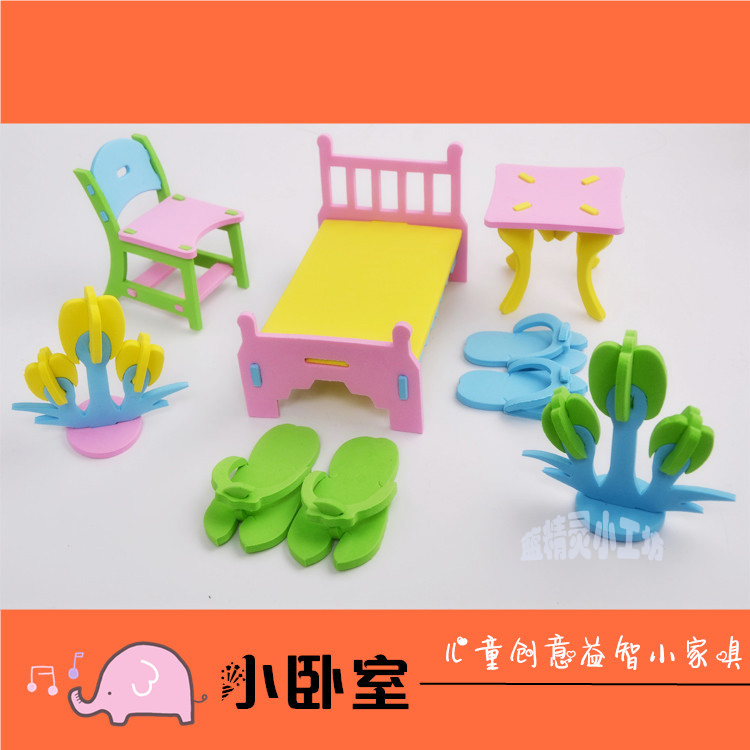 Black girl EVA puzzle 3D three-dimensional puzzle simulation furniture model DIY manual spelling and inserting play house children's toys