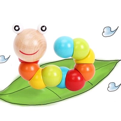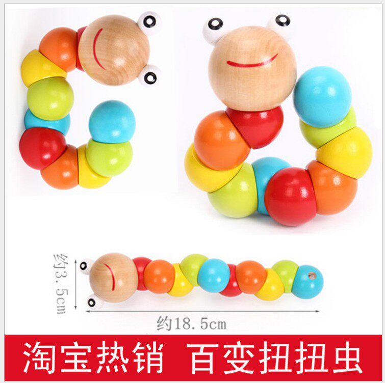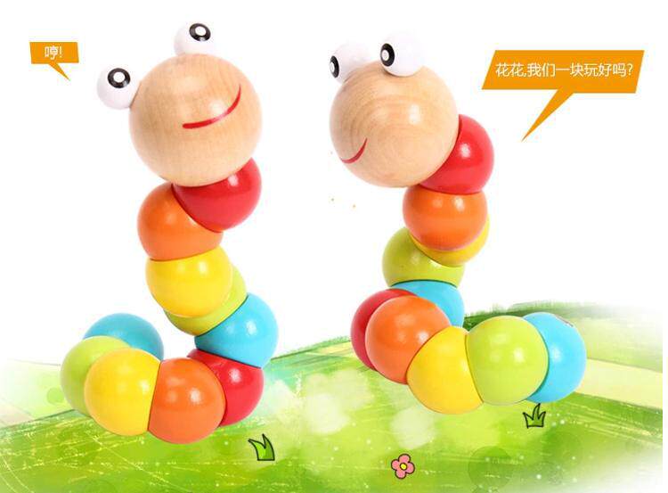 Twisted worm wooden children beaded around beads 10-12 months baby develops educational toys 0-1-2-3 years old