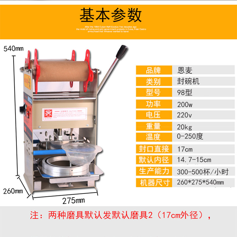 Manual hand pressure sealing bowl machine husband and wife lung slice 17 cm sealing bowl plastic bowl commercial stick chicken sealing machine large diameter