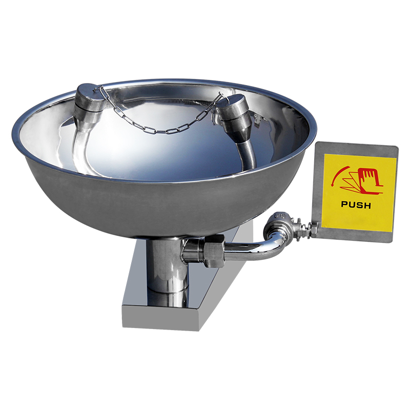Yinuo ABS Yellow 304 Stainless Steel Wall Mounted Vertical Dual Eye Washer Wall Emergency Eye Washer Inspection Factory