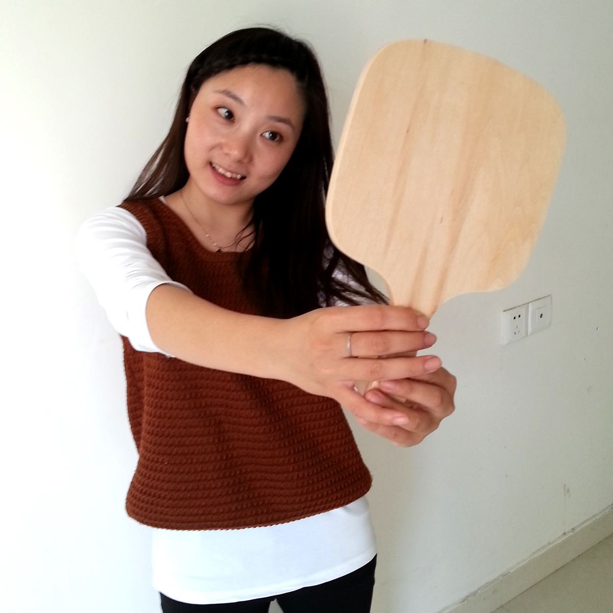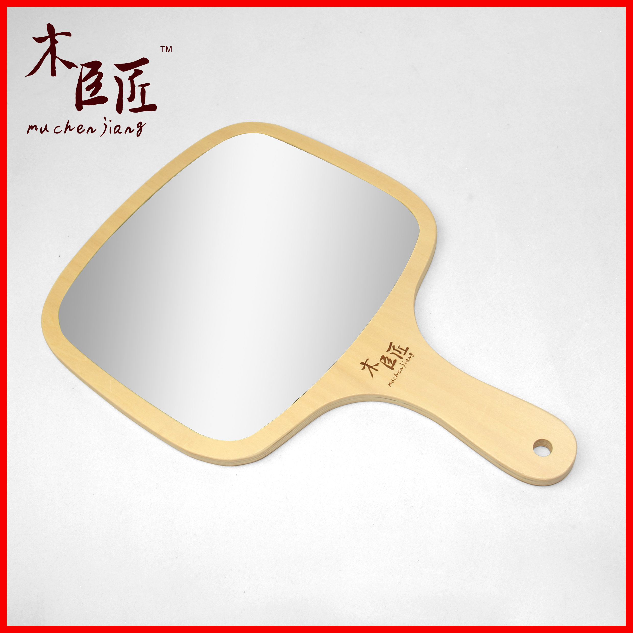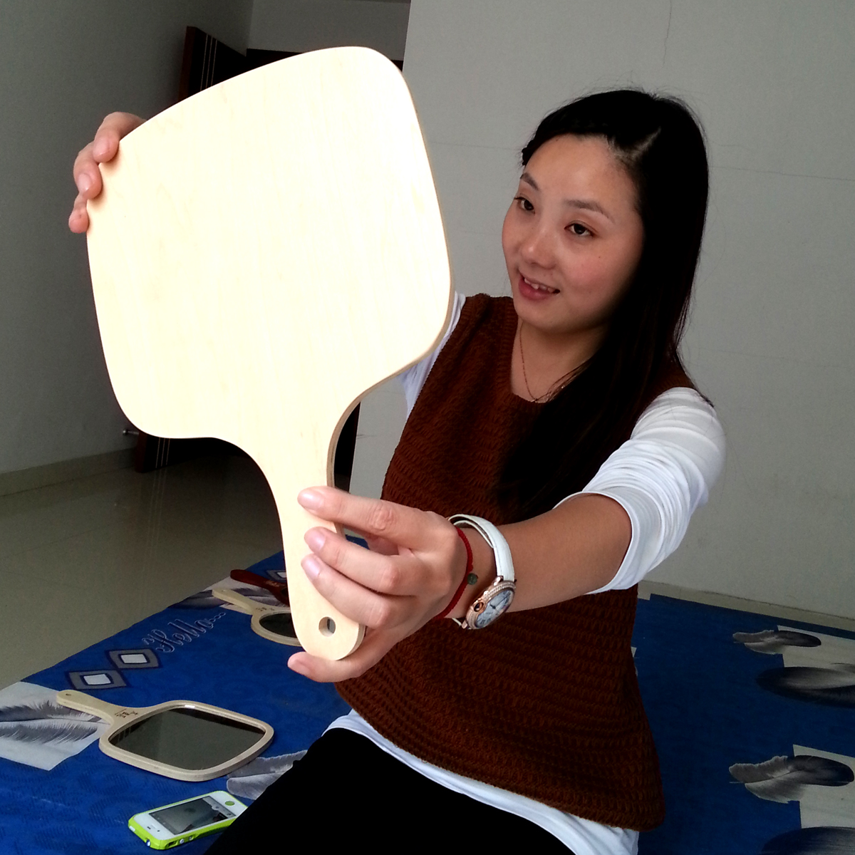 Wooden carpenter hands with wooden hair salon large number handle mirror portable beauty cosmetic mirror can hang with holding cosmetic mirror