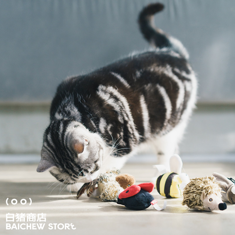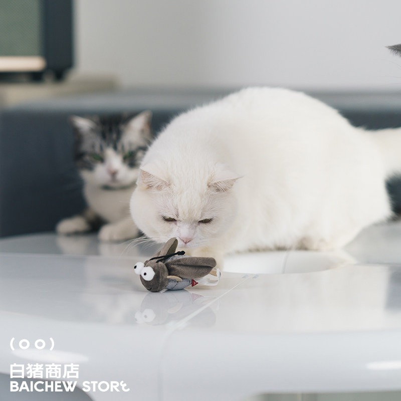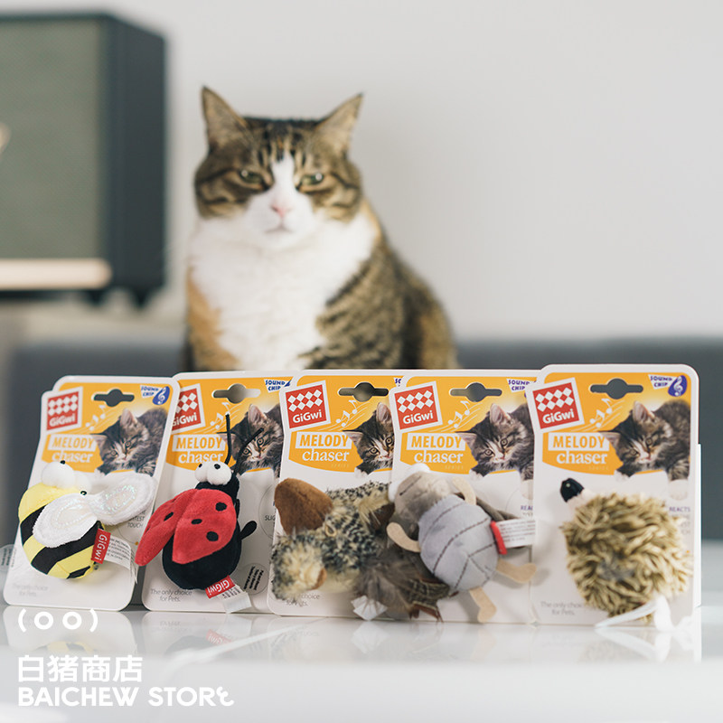 The white pig store gigwi is a cat toy mouse and bird that makes noises and calls the ball to amuse the cat and relieve the boredom.