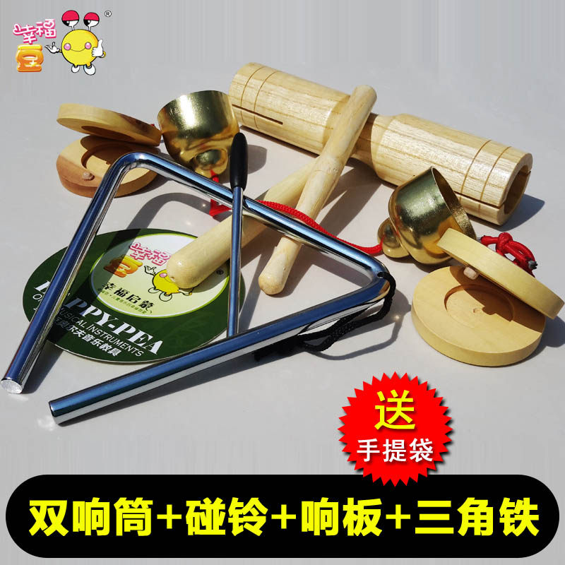 Elementary school music lesson teaching aids: Bumper double ringing cylinder triangle iron castorboard round dance board children's percussion instrument set 4 pieces