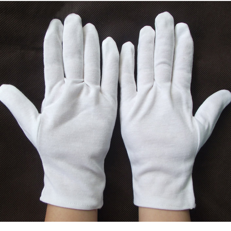 100% white cotton gloves protective etiquette gloves driver jewelry cotton cloth labor protection plate pearl play show