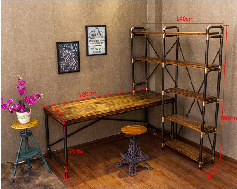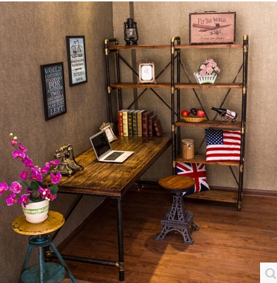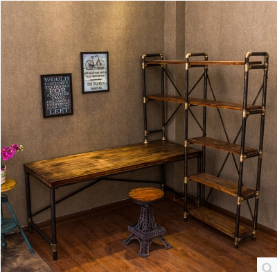 Retro industrial style wrought iron desk bookshelf combination simple solid wood desk computer desk corner home desk