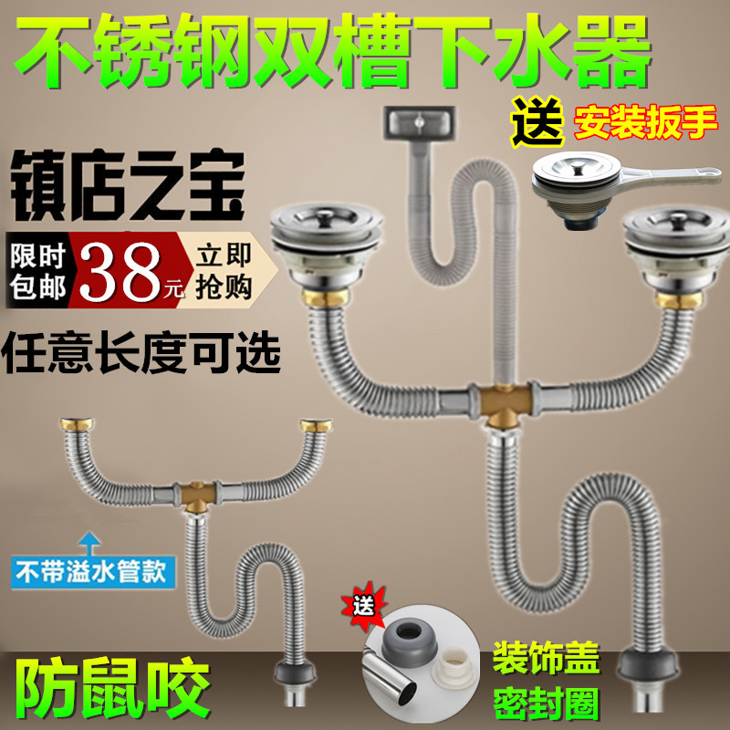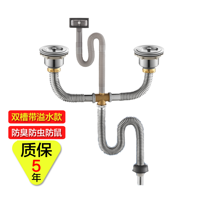 Kitchen wash basin stainless steel double sink drainage pipe anti-mice bite anti-odor double sink sewer accessories