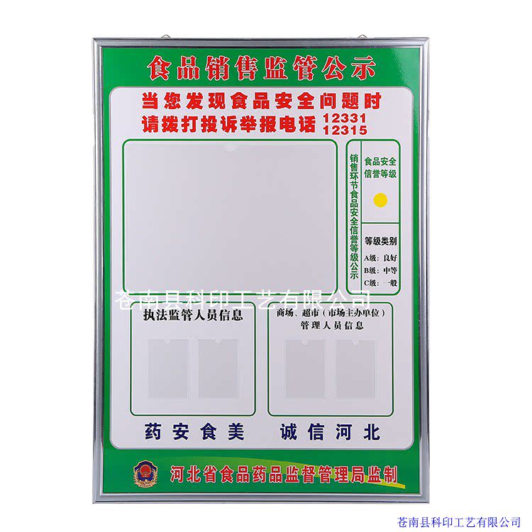 Customized food sales and management supervisory public information bullet plate