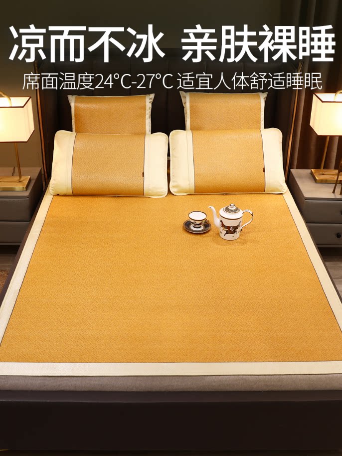 Yellow Gurrines Cane Mat 1 8 m bed Folds Thickened Double Man Bed Mat Student Dormitory Summer Air Conditioning 1 2m