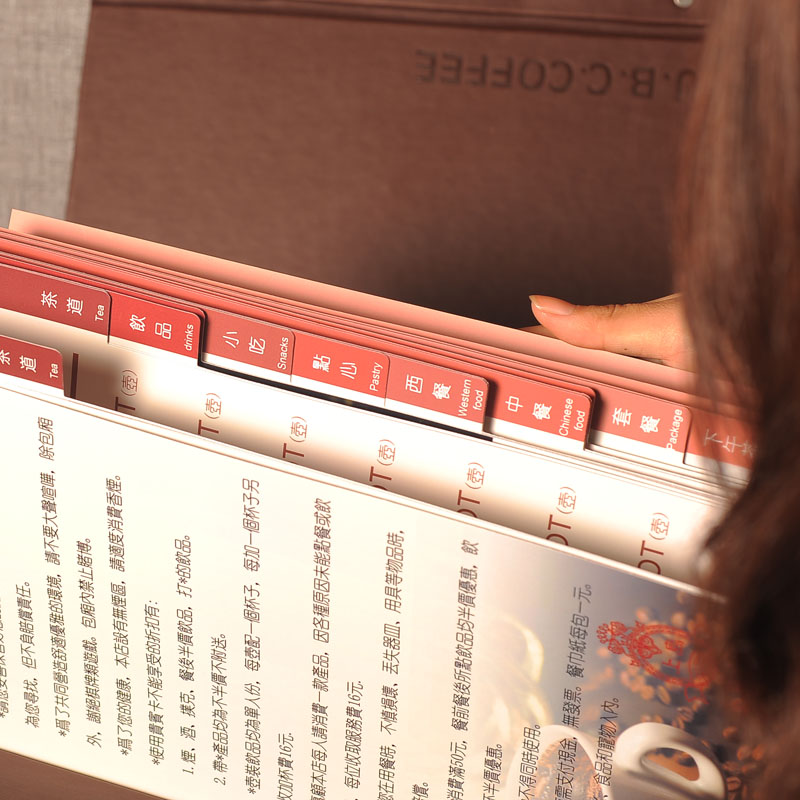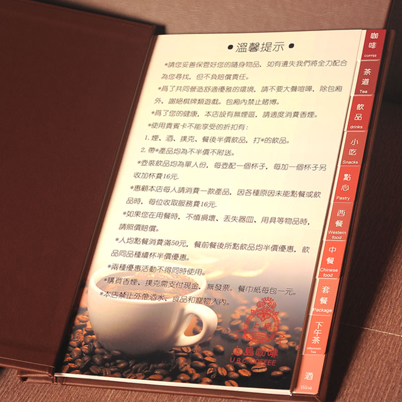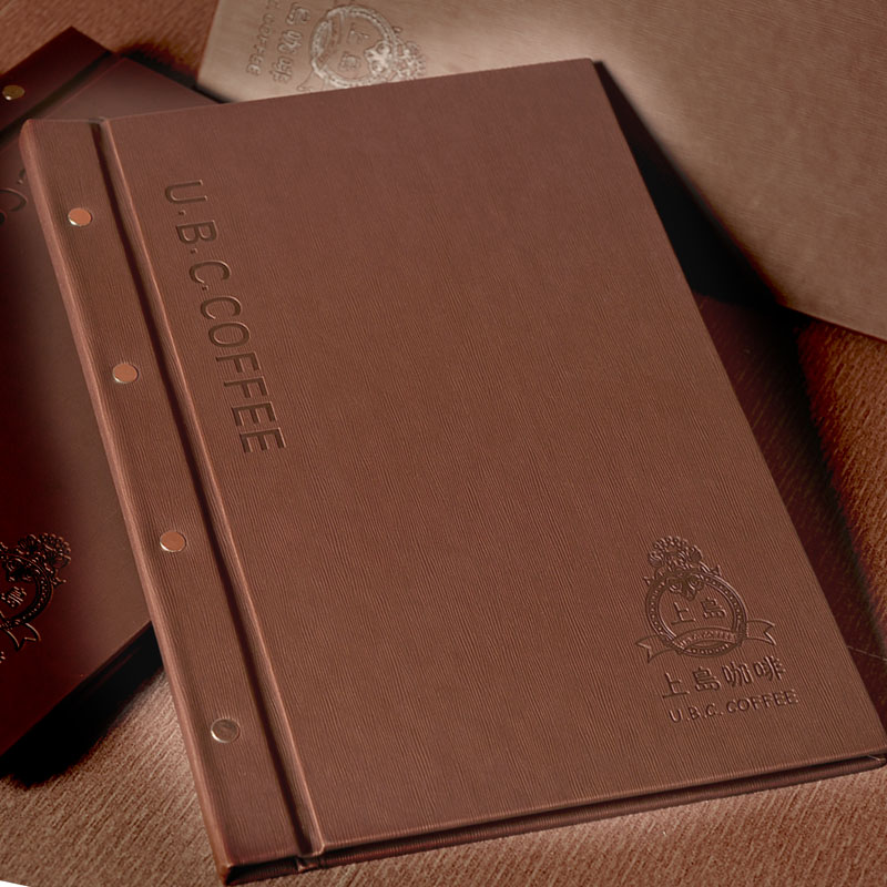 Custom set to make upscale loose-leaf fine clothing recipes Dining Card Leather Face Bronze Nail Menu This Price List Printed Design