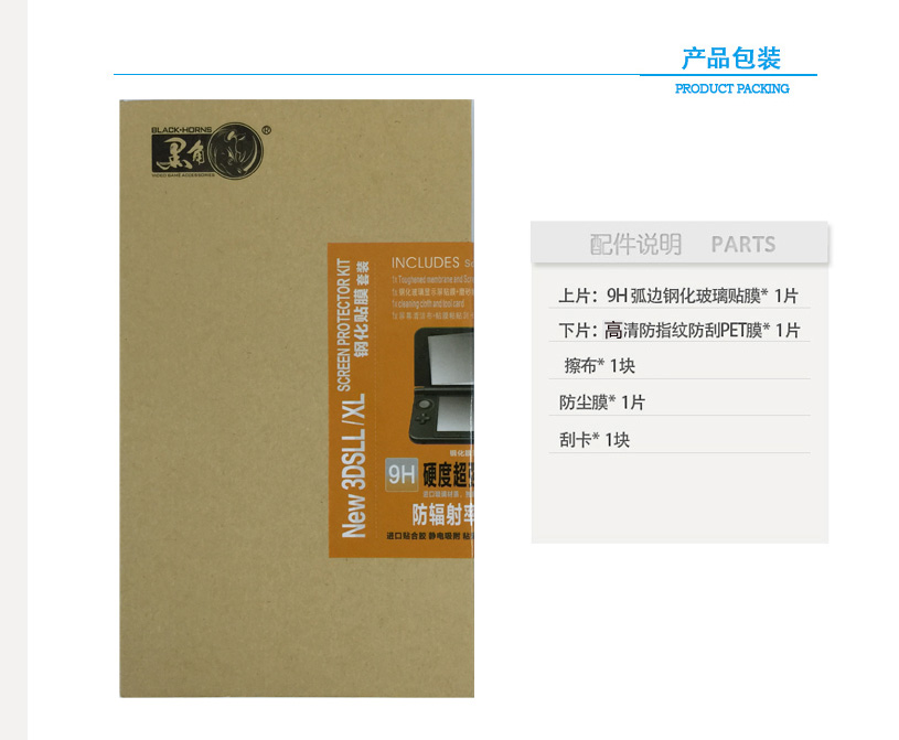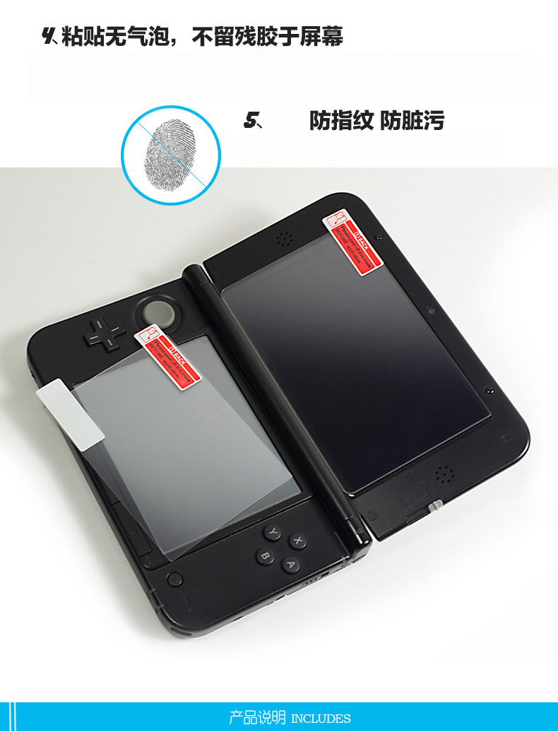 Black Corner Original NEW 3DSLL Tempered Film Protective Film Glass Film Scratch Resistant Full Screen Top and Bottom Film