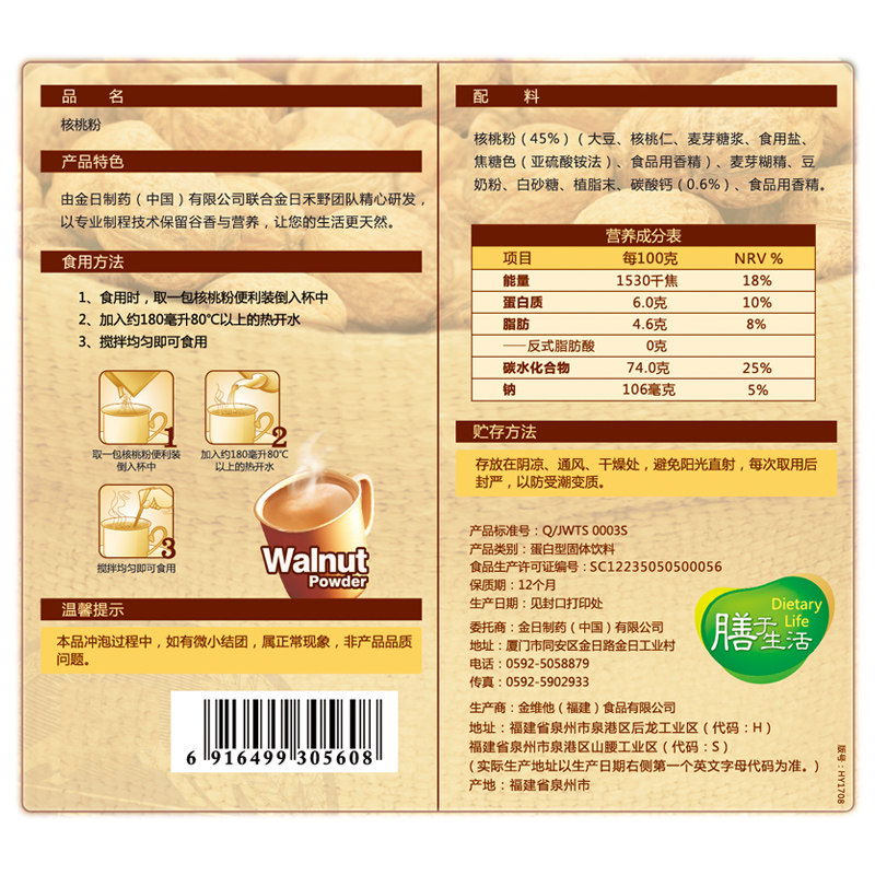 Walnut powder (walnut powder soybean maltose refined vegetable oil) bean milk powder malt burnt essence white sugar and so on
