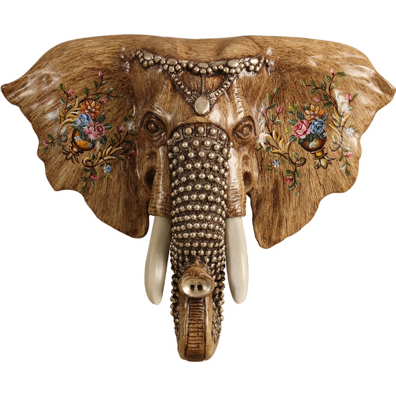 European elephant head luxury retro resin wall hanging wall decoration Home American living room creative decoration Craft gift decoration