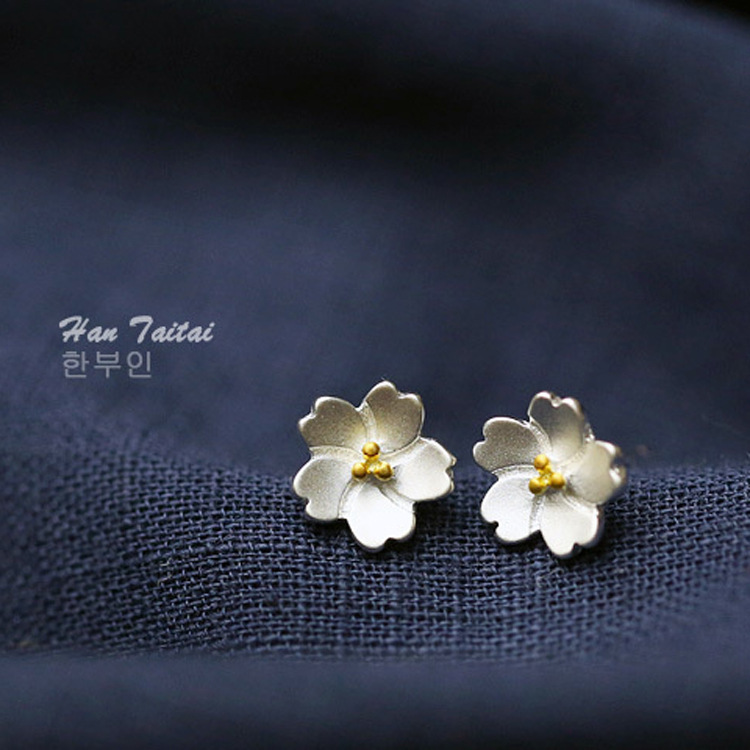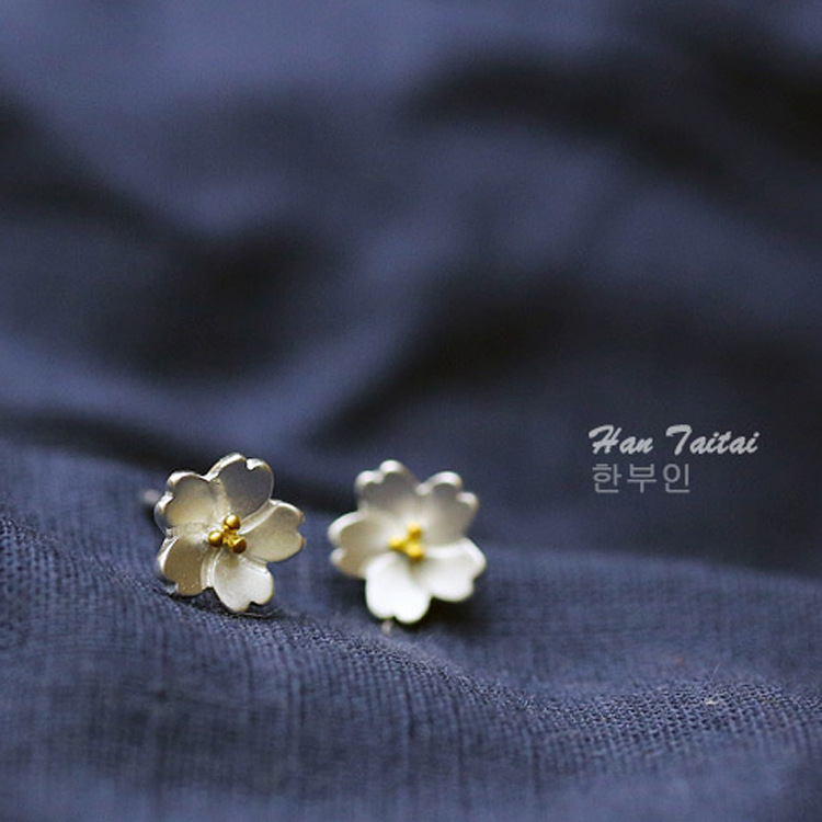 Original handmade 925 pure silver earshot flower Jane about Japan-ROK style 100 lap temperament anti-allergy cherry earrings earrings