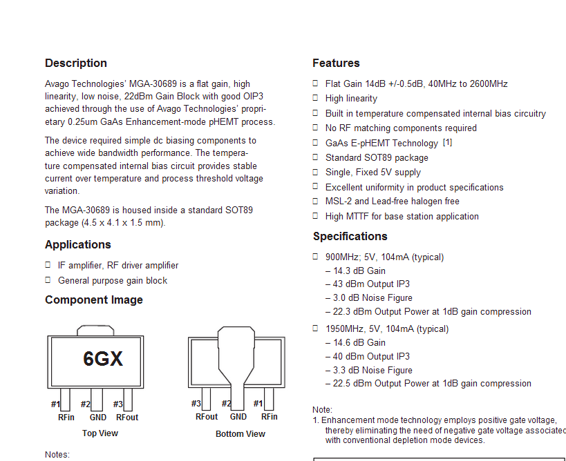 MGA-30689-TR1 Screen printing 6G SOT-89 40-3000 MHz Flat high linear gain tube