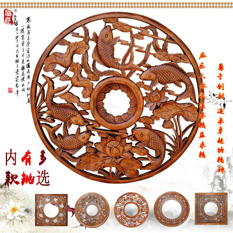 East Yangwood Carved Ceiling Lamp Pan Lamp Pool Imitation Ancient Round Wood Carved Hollowed-out Flower Lattice Chinese Lampshade Carved disc