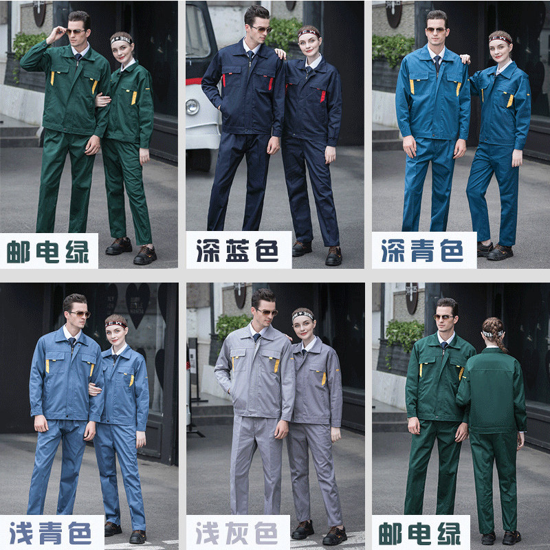 Long-sleeved work clothes suit men's decoration company construction site workers tooling workshop factory service labor insurance clothing post and telecommunications green