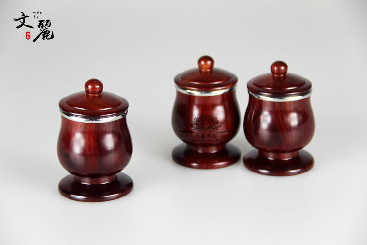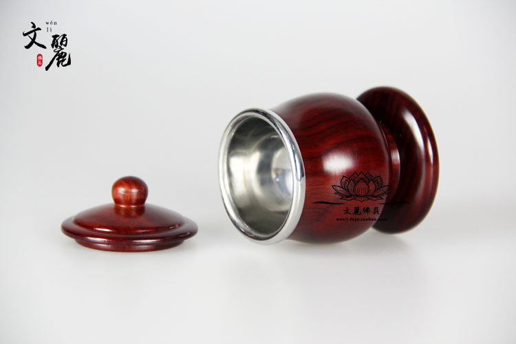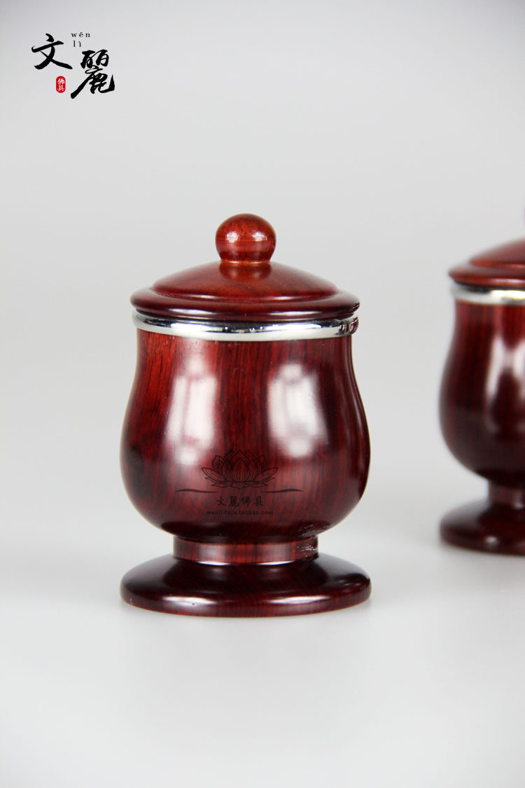 Venli Buddha with holy water glass for cup red wood color flower pear wood stainless steel liner water purifying cup clean water cup