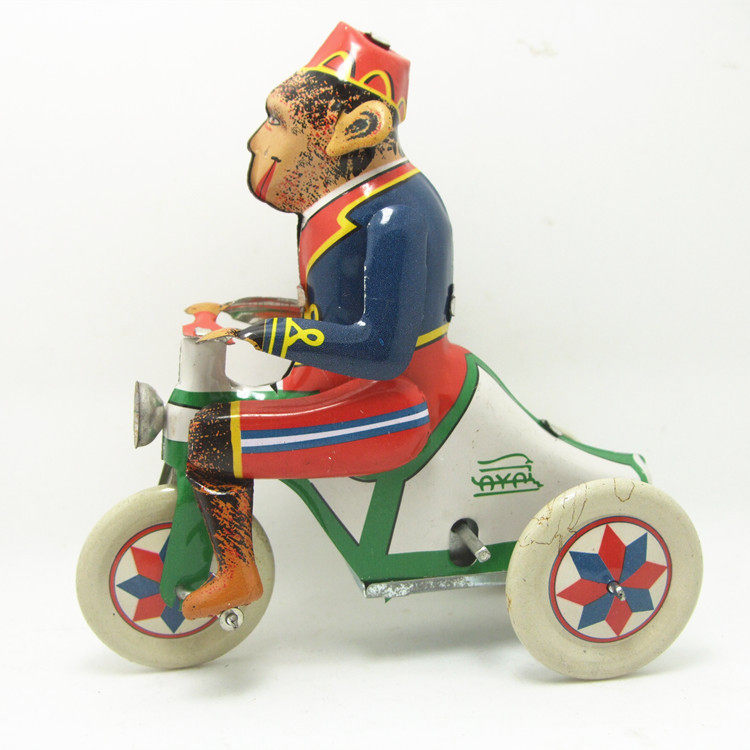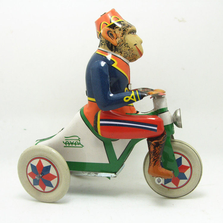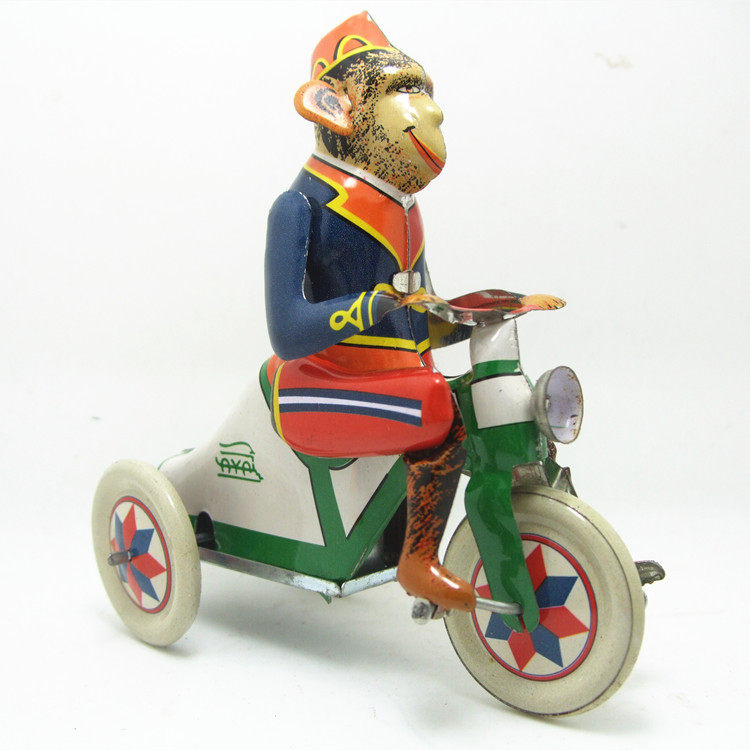 A-10 Tin Monkey Ride Tricycle Tin Nostalgic Collection Toy Monkey