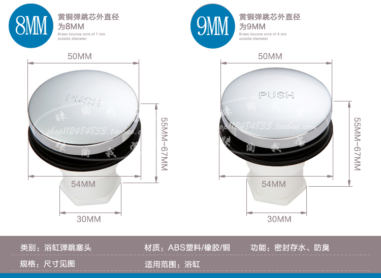 Bathtub Drainer Accessories for American Bounce Cover PUSH Bounce Plug Foot Press