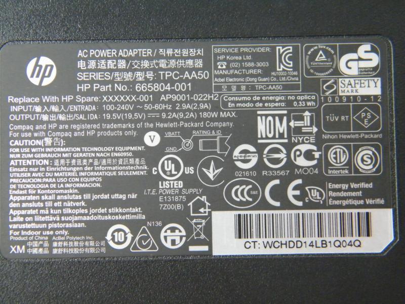 180w original HP server in one machine workstation TPC-AA50 19 5V 9 2A power adapter