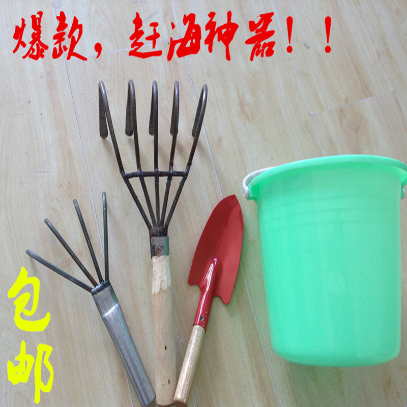 Catch the sea deity 7 pieces (2 people clothing) catch-up with four pieces of wood handle to catch the sea big harrowing little rake 1 (single shot 2 starts) 4 color small plastic bucket 1 (single shot 2 up) iron handle small shovel 1 (single shot)