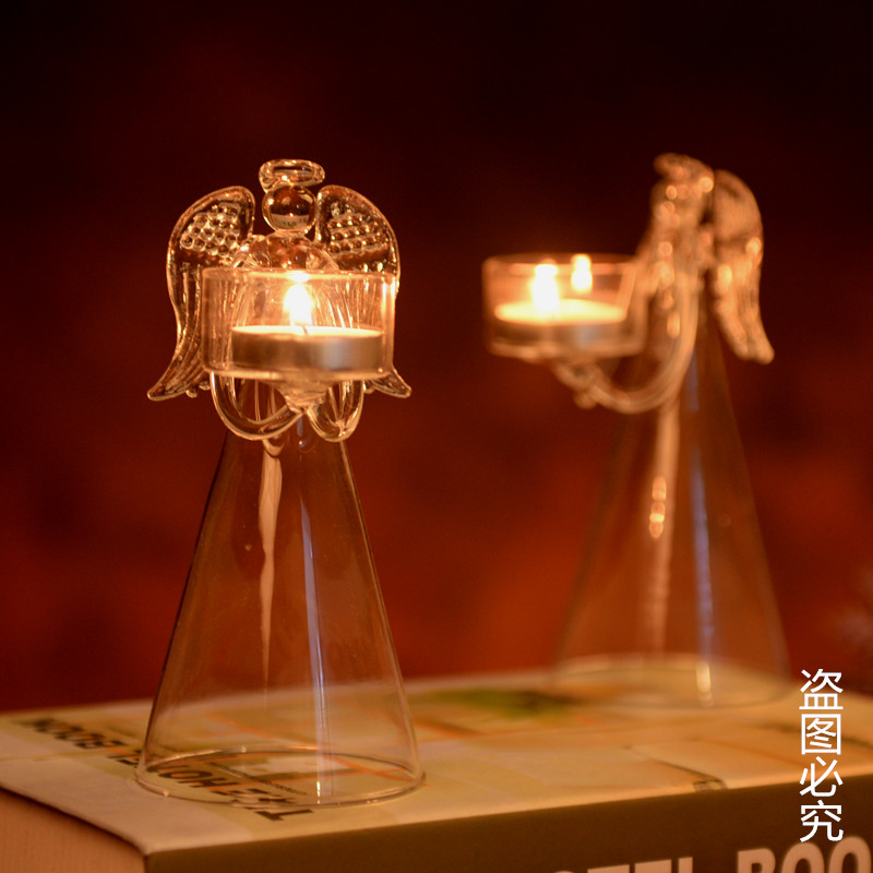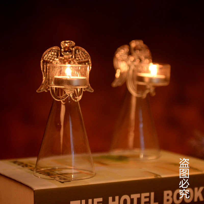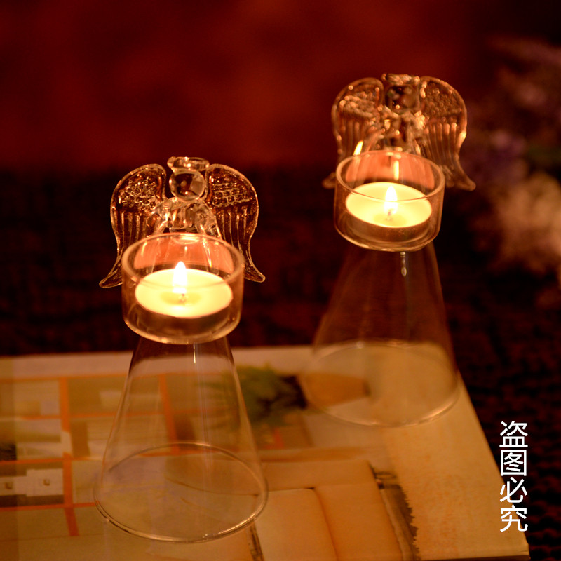 Eurostyle Creativity Blessed Angel Craft Gift Pendulum Decorated With Transparent Glass Candle Holder Suit Romantic Wedding