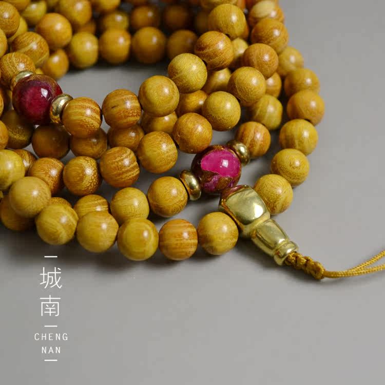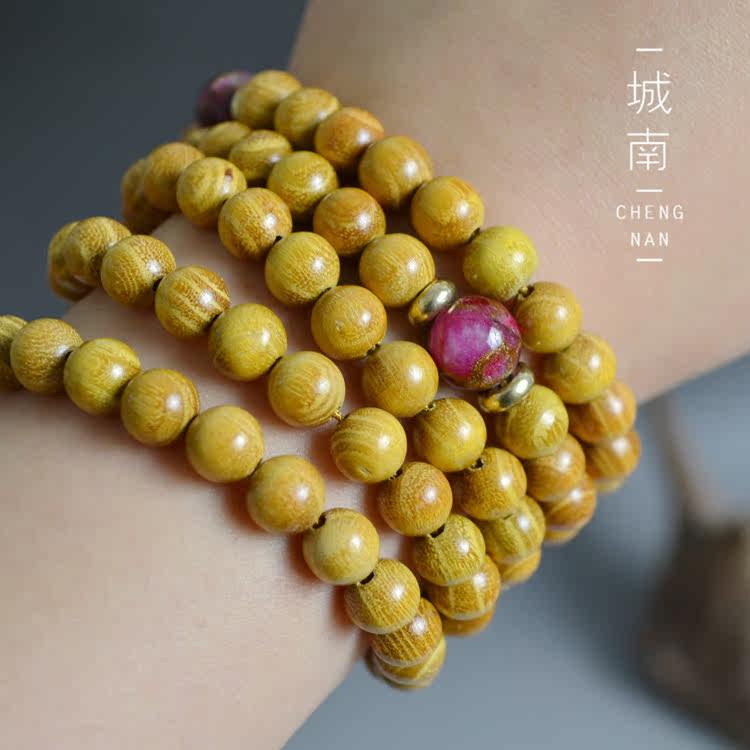Tibet natural gold wood gold teak sandalwood 108 Zizi Buddha beads multi-layer hand string necklace cloisonne to attract wealth