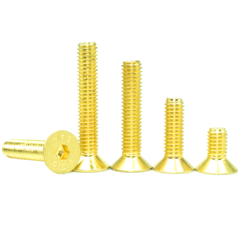 M2.5*568120 titanium plated gold 12.9 grade sink flat head inner hexagon screw bolt rod nail high strength alloy steel
