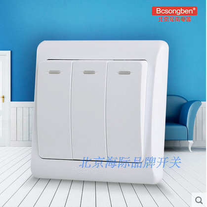 Beijing Matsumoto A7 flat series 3 open three open double cut fluorescent triple double cut 86 type wall switch